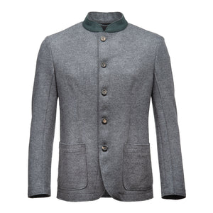 Alois ist ein sportlicher Leichtblazer, der seine Inspiration in der Tracht nicht verleugnen kann. Ganz typisch ist der kleine Sichelkragen. Um den lässigen Charakter von Alois zu unterstreichen, hat der Trachtenblazer keinen Innenbeleg und auch keine Tasche innen. Ein Futter für diesen einzigartigen Stoff wäre auch Blasphemie, ist Alois schließlich aus dem "Travel Weber 01" Stoff. Eine Eigenentwicklung von Weber + Weber. Drei Meter Schurwollstoff werden dafür nach dem Weben gekocht und schrumpfen auf einen Meter zusammen. Dadurch erhält das Material seine charakteristische Optik und jede Menge gute Eigenschaften. Wasser, Wind und Wetter können Alois ebenso wenig an wie Schmutz oder Gerüche. In der körpernahen Silhouette und der leichten Konstruktion ist Alois ein Janker für viele Fälle, der zur authentischen Tracht genauso kombiniert werden kann wie zur Jeans.