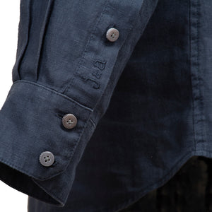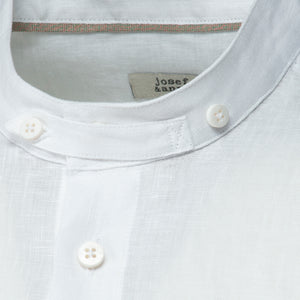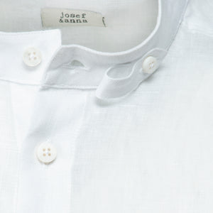 Das ist josef & anna in Reinkultur. Für Bernhard nehmen wir uns der Pfoad an, dem Trachtenhemd schlechthin. Traditionell ist die Pfoad eigentlich ein Stehkragenhemd zum Hineinschlüpfen. Mit einer Knopfleiste, die nur drei Knöpfe zeigt und danach verdeckt ist, vereinen wir die Pfoad-Optik mit Komfort beim Anziehen. Zahlreiche Schneider-Details lassen das Herz höher Schlagen: Ob der kleine Dragoner-Verschluss am Kragen, der geschlossen, offen oder zurückgeknöpft getragen werden kann oder die Paspel auf der Innenseite des Kragens. An der Manschette weist ein Logostick dezent auf die Herkunft des außergewöhnlichen Hemdes hin. Die Knöpfe aus Perlmutt tun ihr Übriges zum hochwertigen Gesamteindruck. Zum Trachten-Stehkragenhemd kann man zum Beispiel ein Bindel tragen, es passt perfekt zu Strehbrustgilets, Westen oder Jankern.