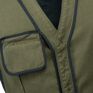 Bastian ist eine klassische Weste mit V-Kragen. Auf den ersten Blick. Auf den zweiten, dritten und vierten Blick offenbart Bastian die vielen Geheimnisse, die josef & anna so besonders machen. Beginnen wir beim Material: Eine Baumwoll-Leinen Mischung mit einem Hauch von Elasthan. Das vereint den kühlen Charakter mit modernem Anspruch an Bewegungsfreiheit und weichem Griff. Diese moderne Version des trachtentypischen Jägerleinens haben wir gemeinsam mit einem österreichischen Stoffhersteller exklusiv entwickelt. Doch damit nicht genug. Bastian wird im Stück gewaschen und gefärbt, was der leicht changierenden Optik des Leinens ein mattes Finish verpasst. Der Rücken des V-Gilets ist aus farblich abgesetzter Baumwolle, genau genommen Chambray in Satinbindung. Das garantiert, dass Bastian über einem Hemd oder unter einem Sakko gut rutscht. Eine optische Raffinesse aller josef & anna Westen: Zwei Zentimeter länger als Standard-Westen, können sie auch solo getragen werden. Überzeugend sind auch Bastians innere Qualitäten: Handwerklich besonders aufwändige Verarbeitung wie die eingebandelte Leistentasche oder die feine Paspelierung zeugen vom sartorialen Charakter unserer Stücke.